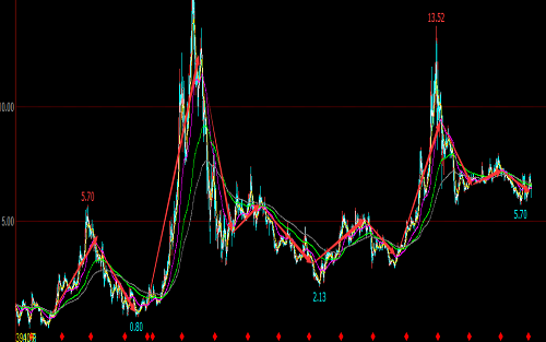 从华能国际的月线图上,我们看到的是先经历了一个5段的上涨走势,然而,这个上涨走势刚形成就被破坏掉了。其后,经过一个三段盘整或者盘整拓展,朝着一个新的趋势方向发展。