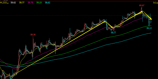 昨天还有人问:原油为何会在这个位置下空单,不是很能理解。其实这有什么好奇怪的呢,在跟学生上课的时候,就提到过这一点。原油在1小时图上,其前段实在是太长了,通常这样很容易面临调整段。而目前又来到了整数位60附近,且原油走了超7根小阳柱。这在原油以往的走势中是很难有不调整的。而在原油1小时图流畅活跃的背景下,如果出现了1小时反向段的机会,那去下个空单,不就是很自然而然的事情了么?