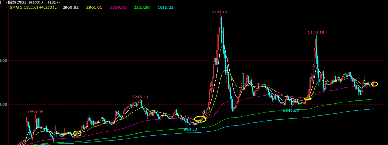 比如当下的大盘指数,在月线上,如果我们整体去看,其本级别对55周期SMA均线的回归,无疑不是那么标准了,有时候穿了55周期SMA均线,有时候又没穿,且有远有近,那如何去处理?显然,我们可以观察到一点:那就是在55周期SMA均线附近,不管是穿或者不穿,其发展出来的上涨段,在历史上都有着流畅而活跃的难论特征,那这就是我们的处理基础,又何必要固定在结构意义上去处理呢?